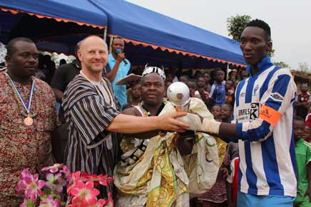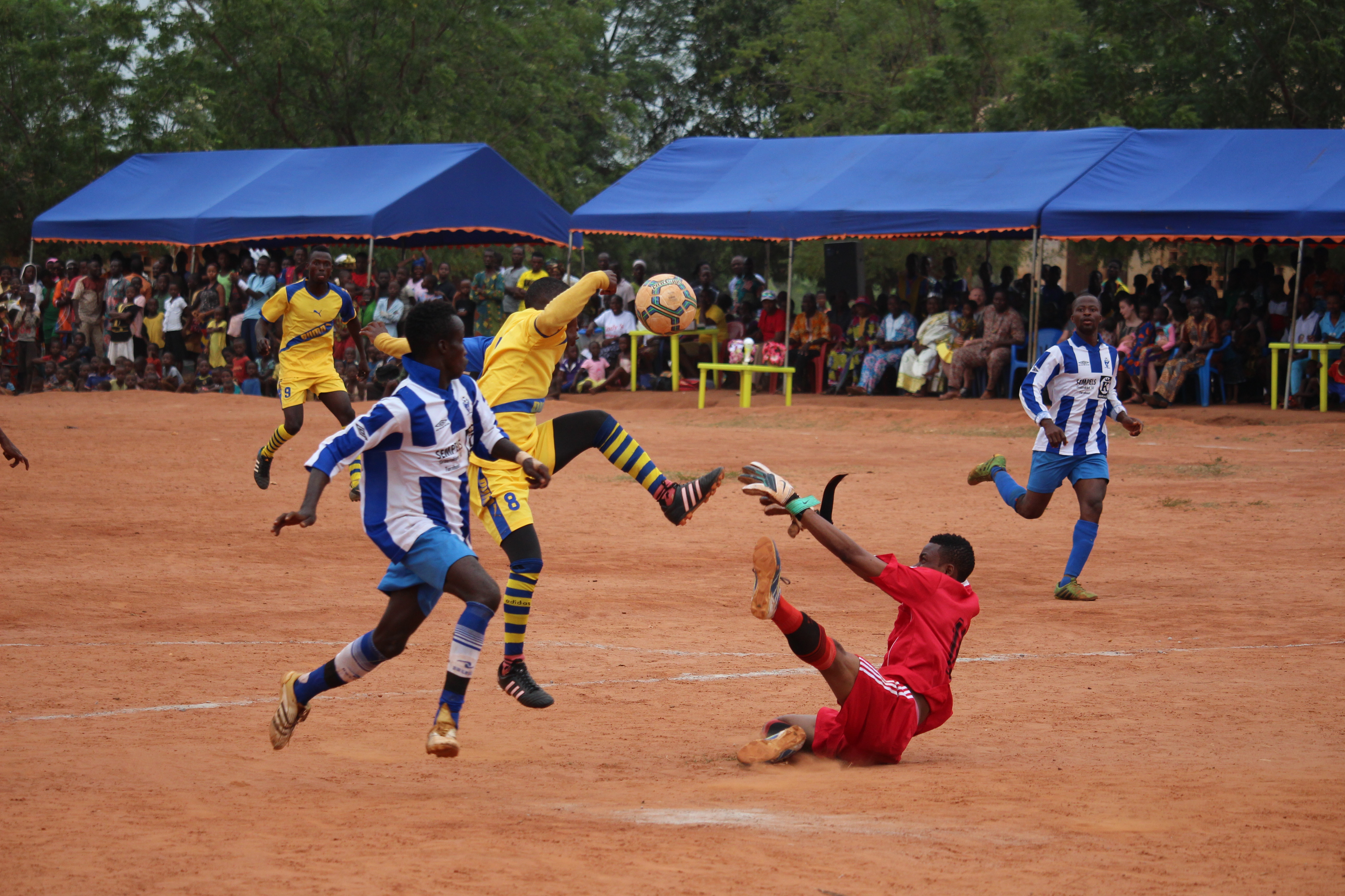 Bereits lange vor unserer Reise nach Assomé wurde ein großes Fußballturnier geplant, das von Thomas Kodjo mit viel Engagement und Organisationstalent vorbereitet wurde. Vor Ort zeigte sich schnell, wie wertvoll diese Idee war. Das Turnier brachte Menschen aller Altersgruppen zusammen – Spieler, Zuschauer, Familien und Kinder verwandelten den roten Sandplatz in einen Ort voller Energie, Begeisterung und Gemeinschaft.