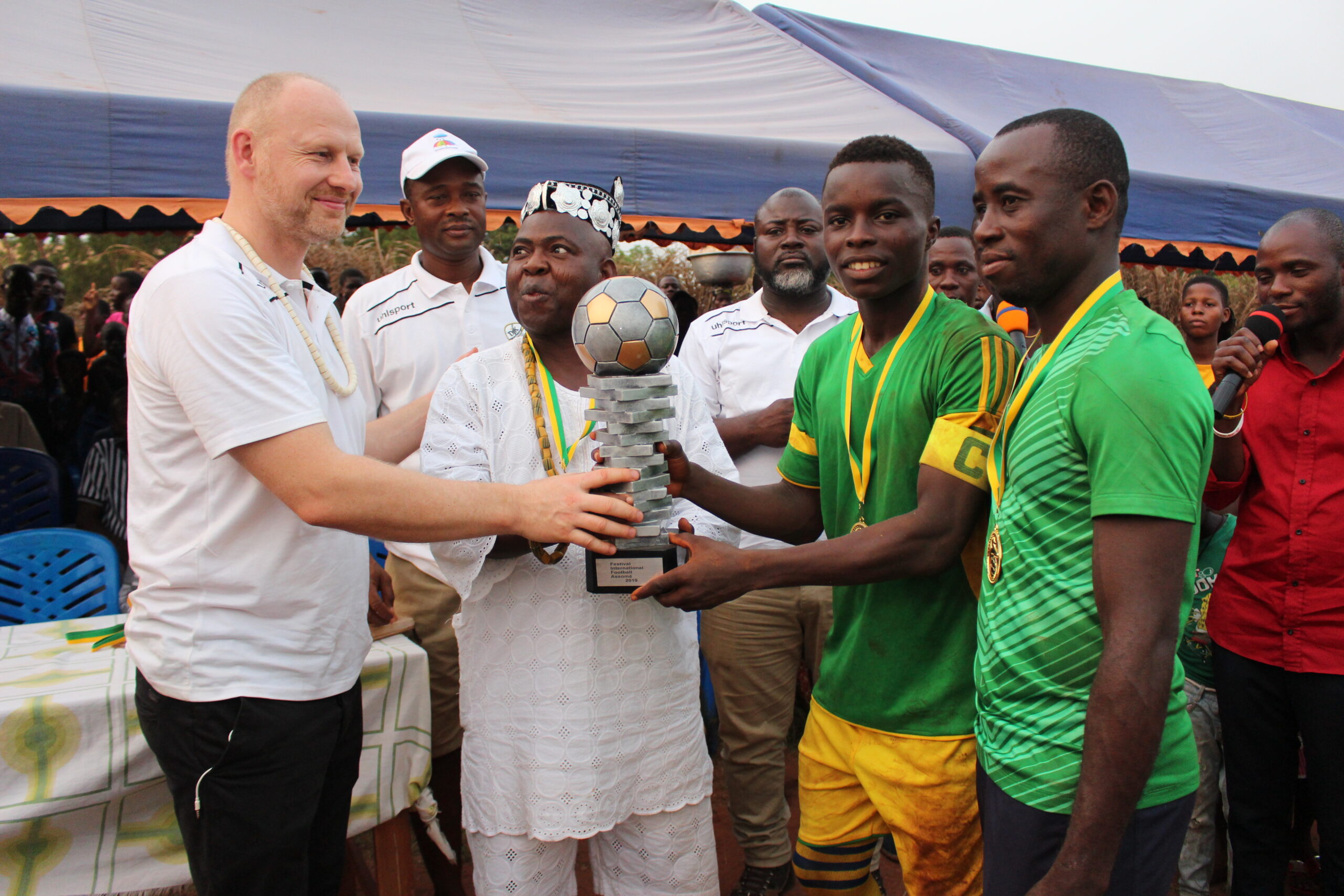 Am Ende standen die glücklichen Sieger fest, die unter großem Jubel den Pokal in die Höhe hoben. Ihre Freude sprang auf alle über, und gemeinsam wurde bis zum Schluss gefeiert. Das Turnier 2019 war erneut ein eindrucksvoller Beweis dafür, wie stark der Fußball die Menschen in Assomé verbindet und wie sehr dieses Fest ein Teil der lokalen Identität geworden ist.